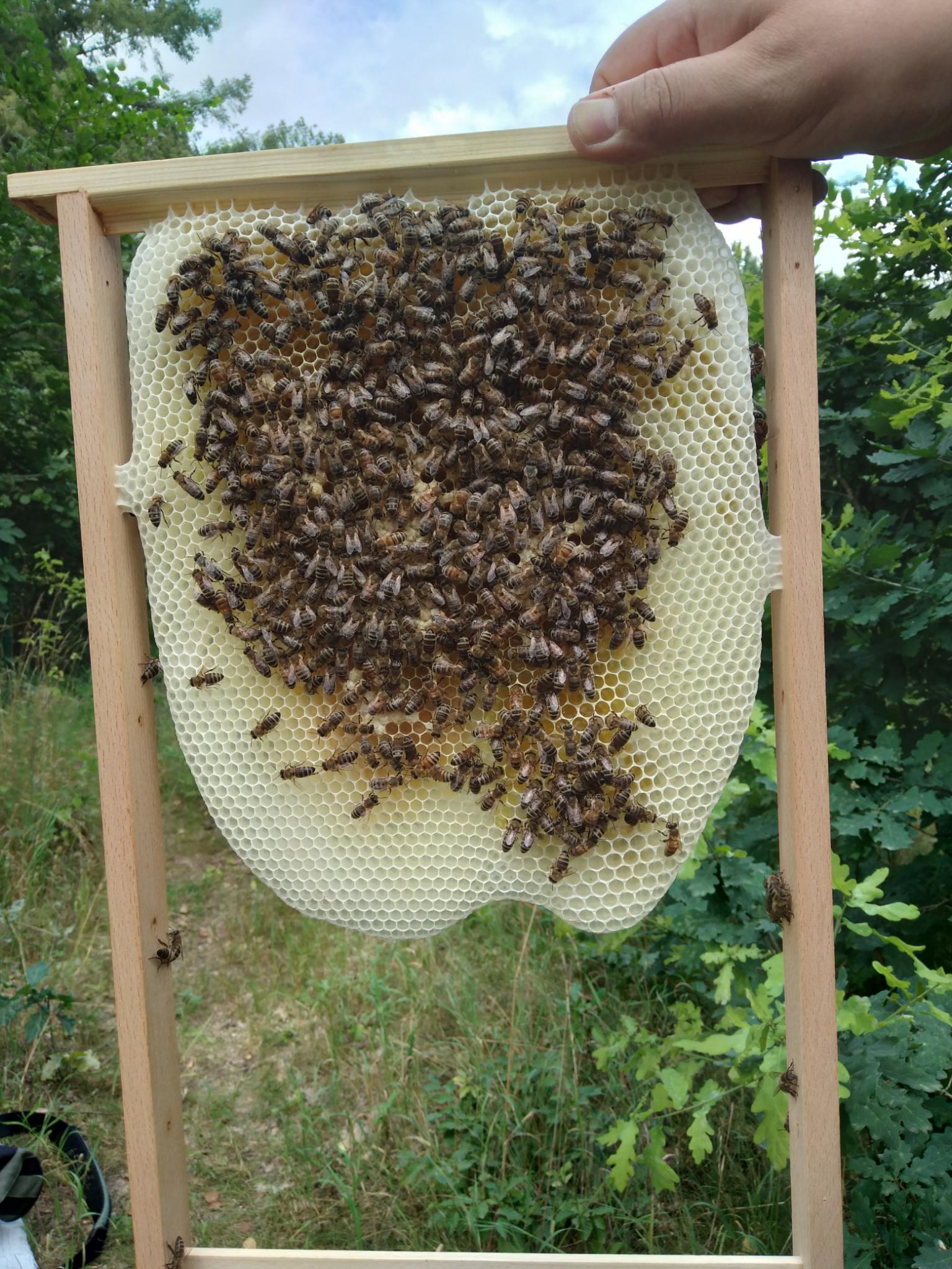 Die Schaukästen ermöglichen Kinder an der faszinierenden Entwicklung eines Bienenvolkes täglich und aus nächster Nähe teilzunehmen und im Laufe von 1-2 Monaten das Schlüpfen einer Bienenkönigin, den kompletten Ausbau eines Rähmchens, die Einlagerung von Pollen und Honig und das Legen von Eiern und Schlüpfen von Bienen zu beobachten. Der Schaukästen wird im Klassenraum direkt in ein Fenster eingehängt, so das die Bienen rausfliegen und sicher von innen beobachtet werden können. Bei drei Besuchen durch mich erfahren die Kinder über den Aufbau des Bienenstocks, wir sprechen über die Beobachtungen im Laufe des Projektes und zum Abschluss über die Bedeutung von Bienen und insbesondere Wildbienen und was wir für diese tun können. Die Schule und jedes Kind erhält ein Tütchen Samen, die auf dem Schulgelände ausgesät werden können. Die Kinder tragen diese Ideen und Samen nach Hause und sorgen hoffentlich dafür, dass auch ihre Eltern ihre Gärten Umwelt- und Klimafreundlicher gestalten.