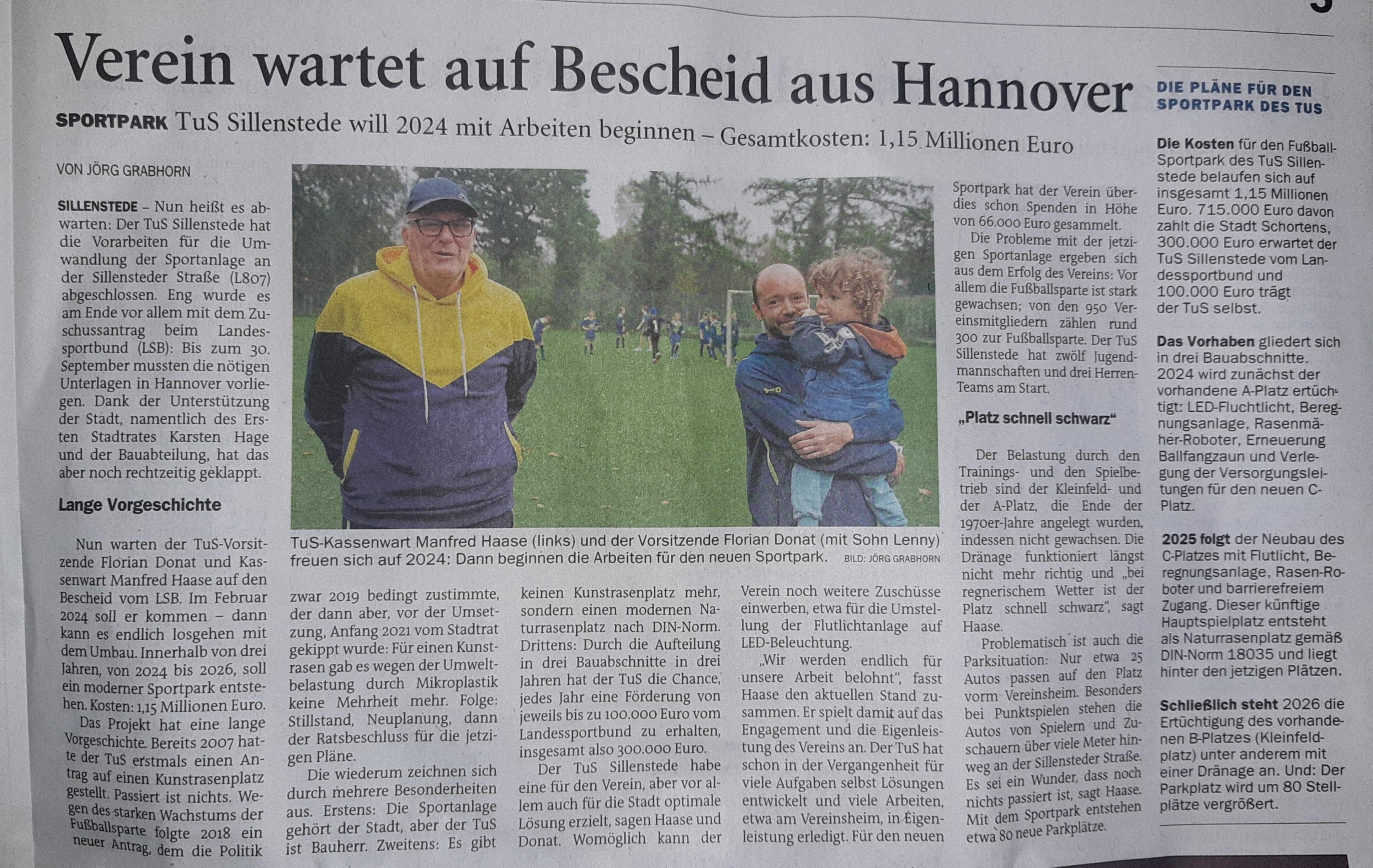 2025: Neubau natürlichen DIN Platz mit allen energiesparenden Bauweisen, Warmwassergewinnung für das Vereinsheim durch Photovoltaik.