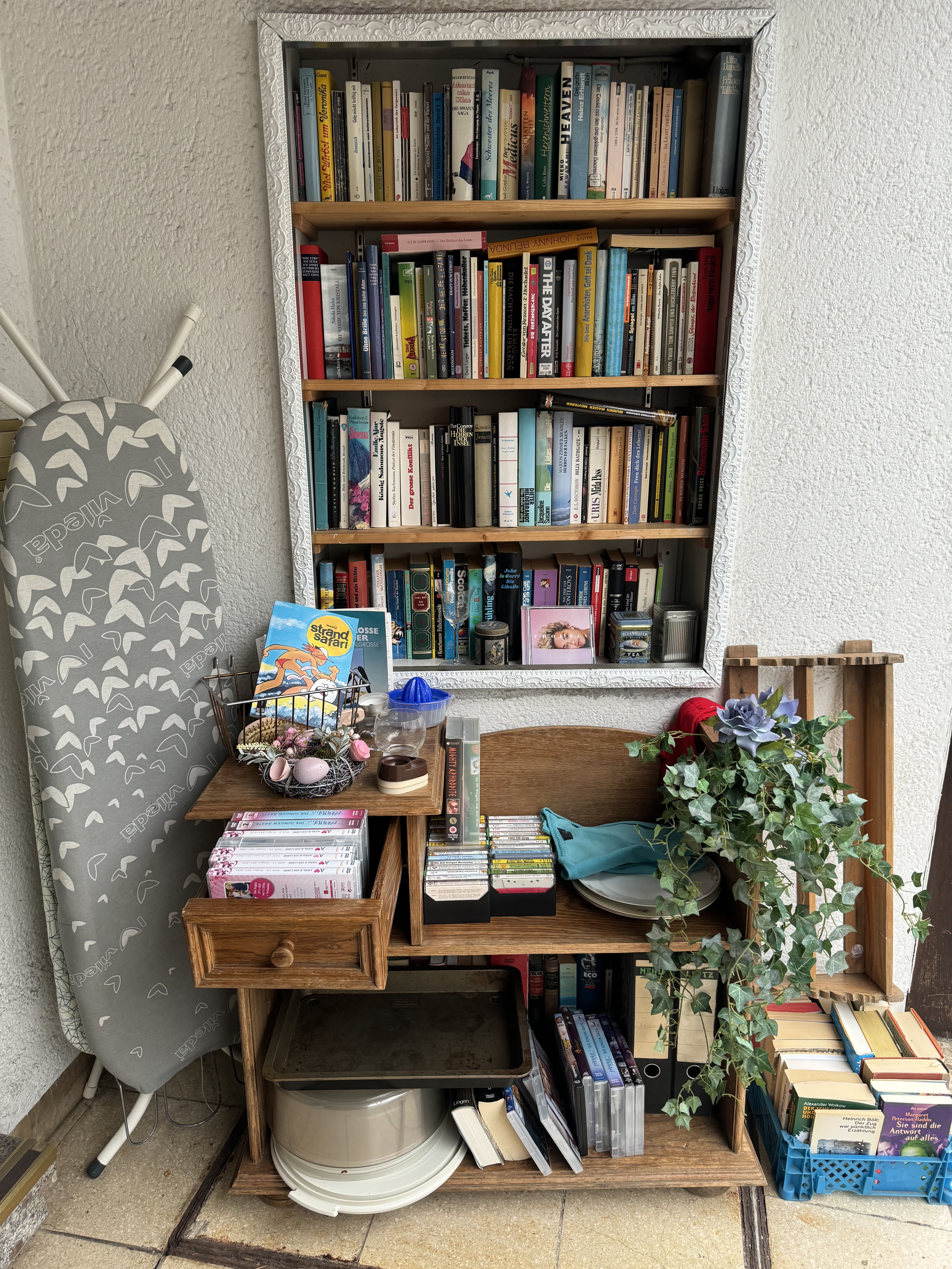 Das Prinzip des Freudigregals ist so einfach wie simpel. Solange Platz ist, kann alles, was zu Hause nicht mehr benötigt wird und anderen eine Freude machen kann, dazugestellt werden. So einfach kann Nachhaltigkeit sein. Sogar saisonal können Pflänzchen dazugestellt werden. Getreu dem Motto: irgend jemand kann das sicherlich brauchen oder verwerten. Immerhin steckt in jedem „Etwas“ viel Energie, so dass das Allermeiste, was nicht gebraucht wird, viel zu schade ist für den Müll.