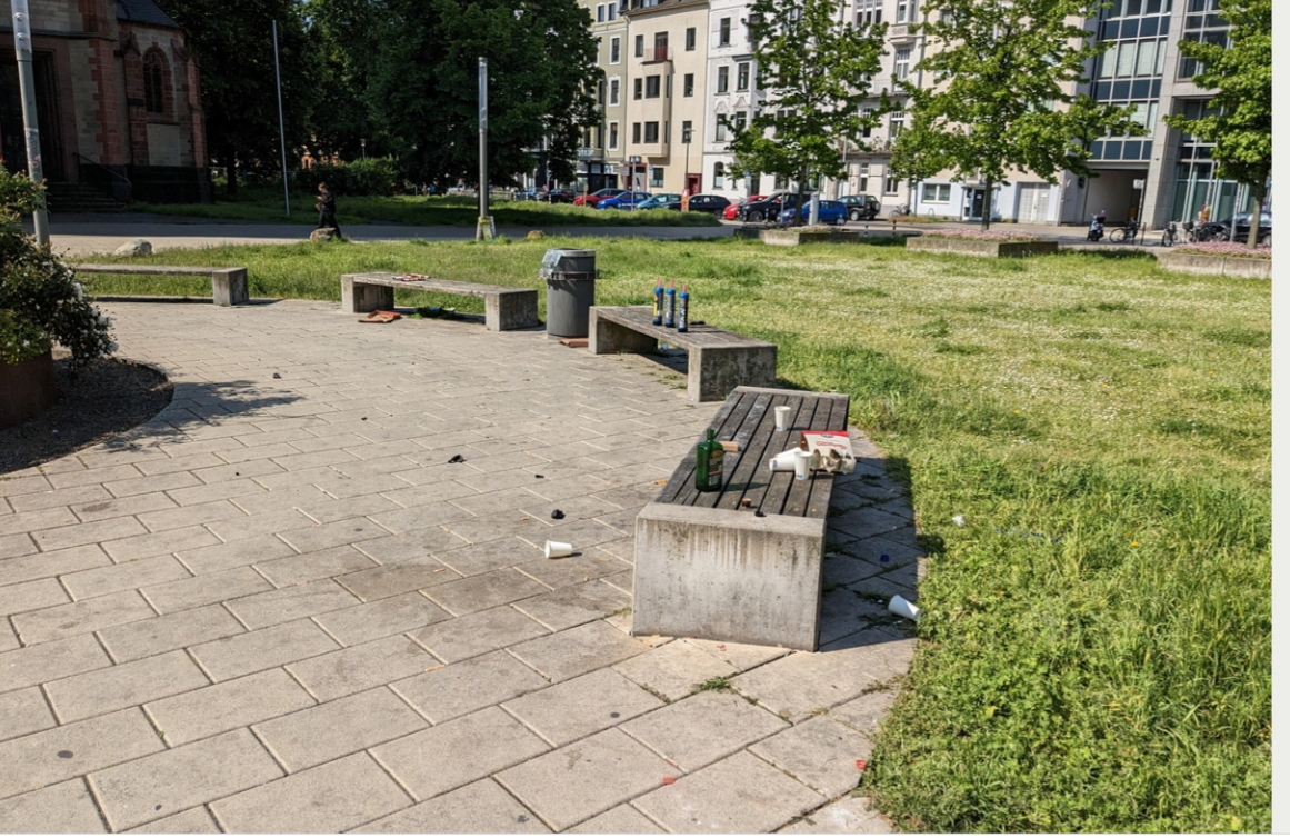 Wird regelmäßig etwas offensichtlich gutes für die Aufenthaltsqualität von Mitmenschen getan, wird der Platz mehr genutzt und wir hoffen, dass dadurch auch weniger achtlos Müll weggeschmissen wird und weniger wilde Schrottablageplätze in bisher noch ungenutzten Ecken des Platzes entstehen.