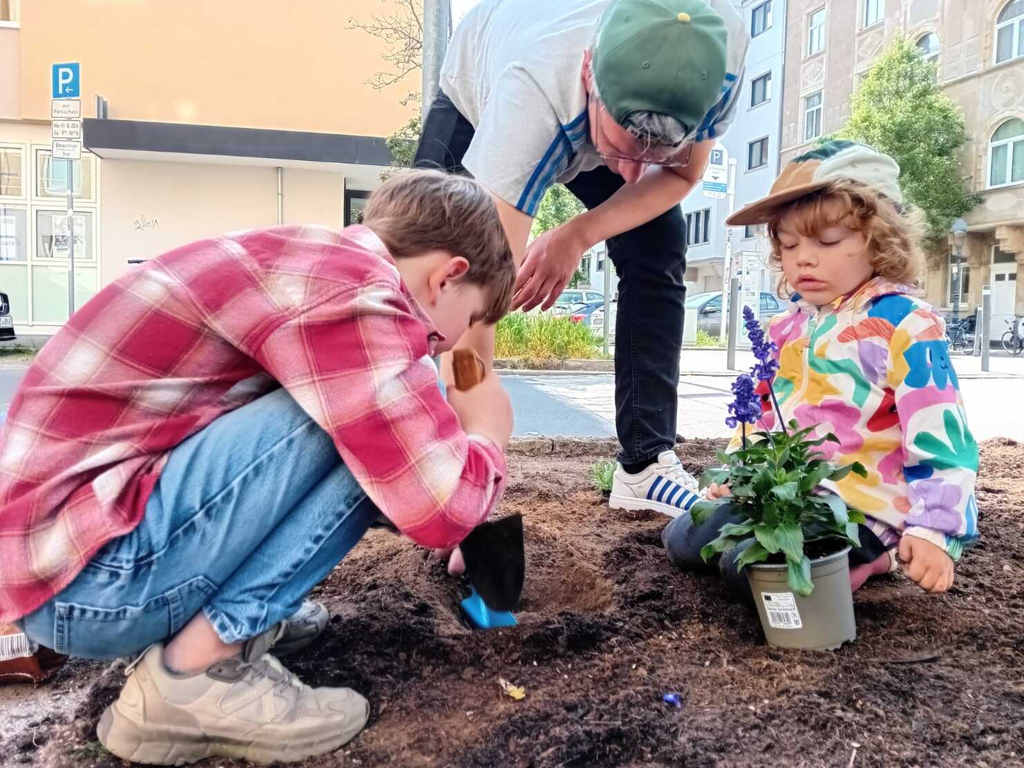 Der frühe positive Kontakt mit der Natur fördert nicht nur die gesunde ganzheitliche Entwicklung, sondern auch eine umweltbewusste Lebensweise im Erwachsenenalter, denn nur wer die Natur kennen und schätzen gelernt hat, kann sich später für den Schutz einsetzen. An diesem Punkt möchten wir ansetzen und den Kindern positive Erfahrungen in der Natur ermöglichen. Mit Leidenschaft und tatkräftiger Unterstützung der Eltern und des Teams haben wir ein brachliegendes verwildertes Stück Land in eine blühende Wiese verwandelt - einen Ort, an dem Kinder ihre Sinne schärfen, kreativ werden und sich in der Natur entfalten können. Eine Natur- und Umweltpädagogin ist stets mit vor Ort und begleitet die Kinder in bei diesem Prozess und thematisiert darüber hinaus Aspekte der Nachhaltigkeit. Zusätzlich soll dies ein Ort der Gemeinschaft und des Austauschs unter freiem Himmel werden. So planen wir das Grundstück auch für andere Kindertagesstätten oder den Stadtteil z.B. für Feste nutzbar zu machen.