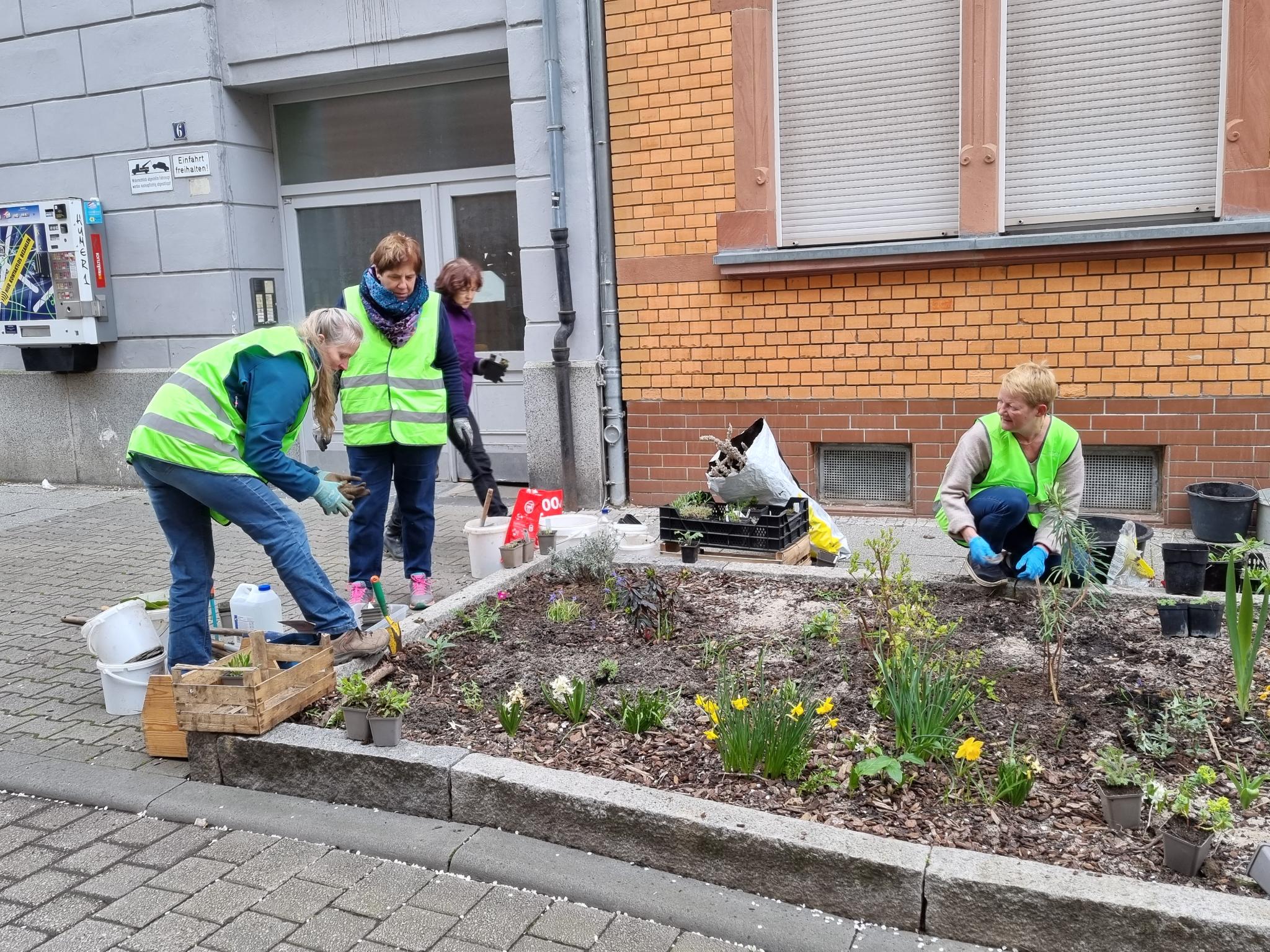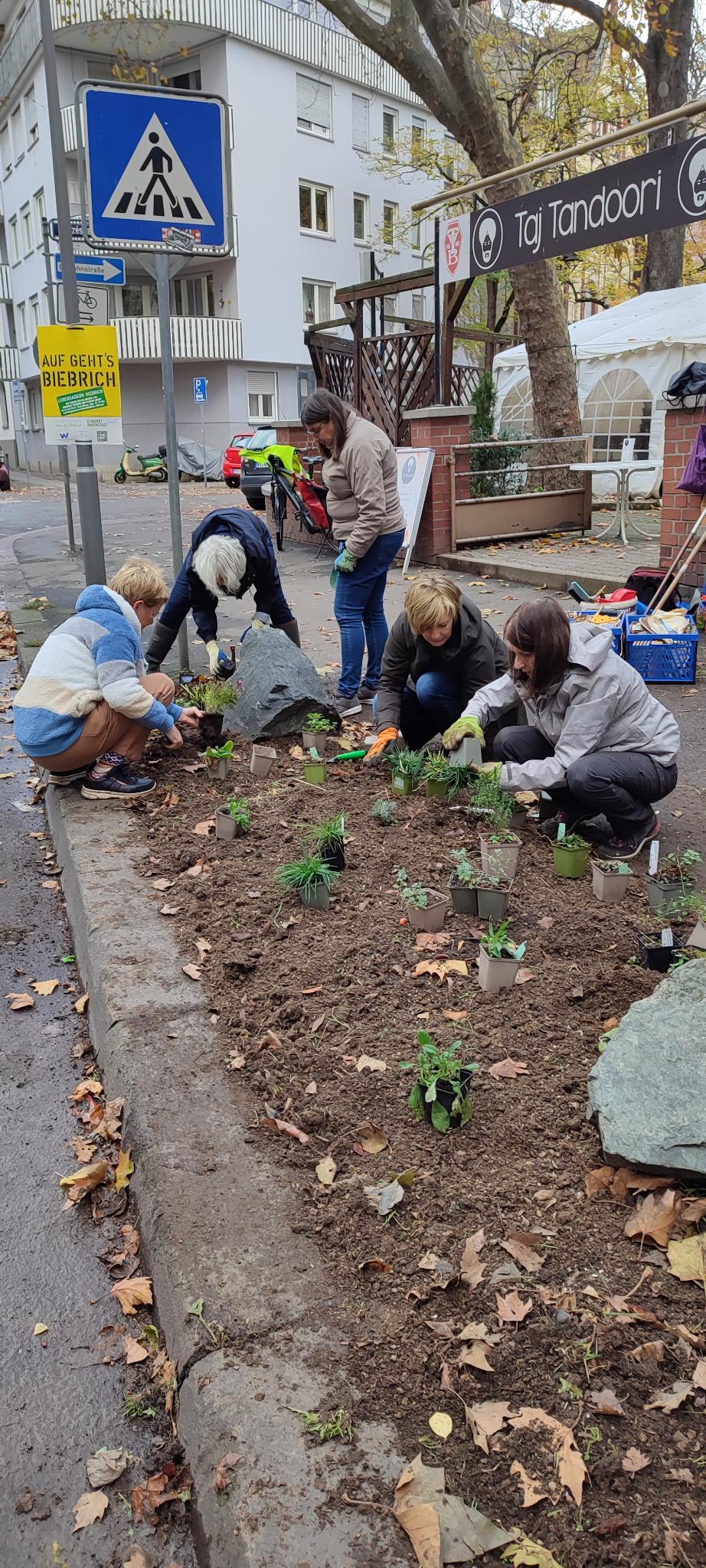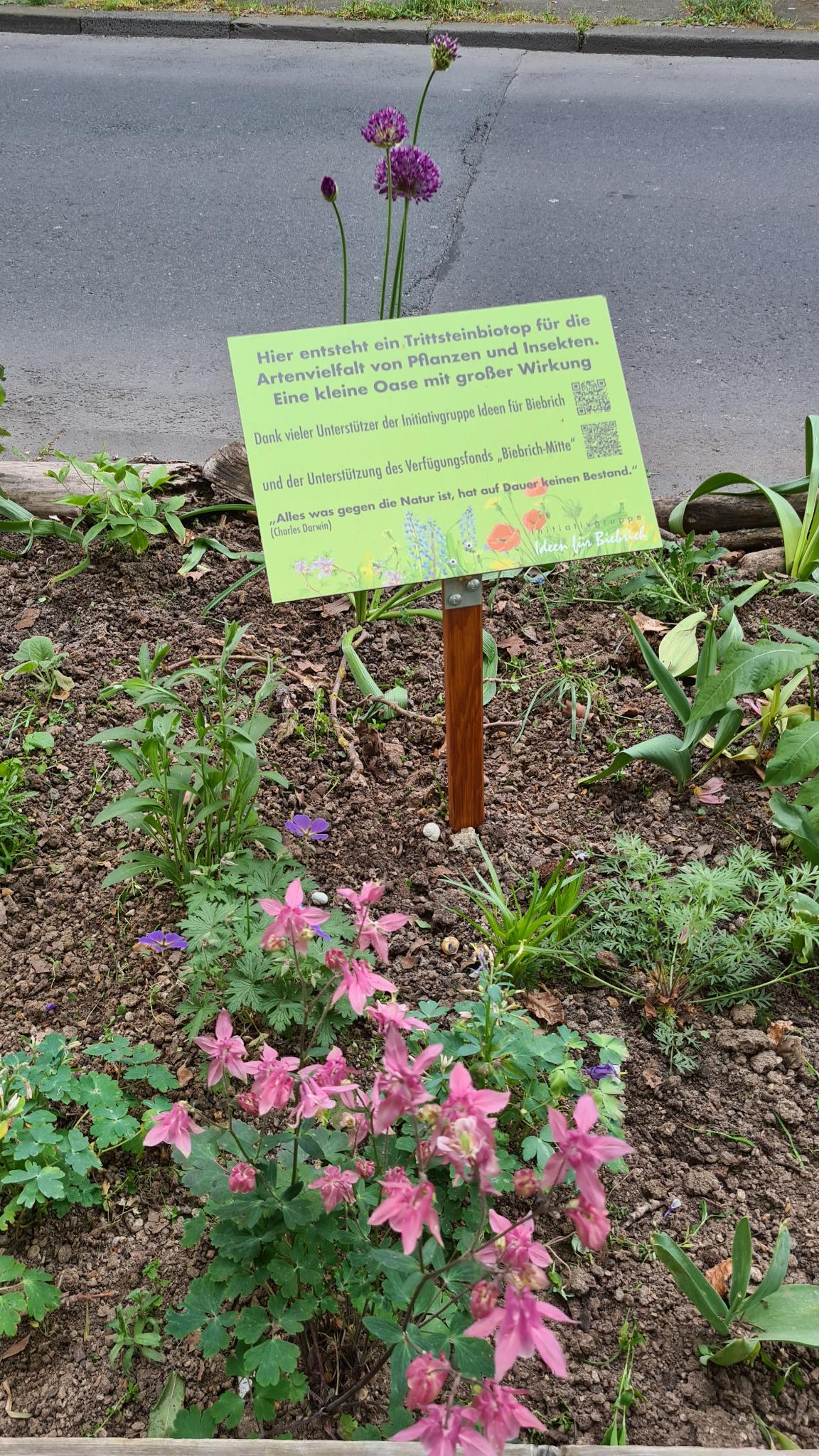 "Biebrich grünt auf", die Aktionsgruppe von IG Ideen für Biebrich e.V., wirkt der Biodiversitätskrise durch ökologisch aufgewertete Baumscheiben und Freiflächen entgegen. Diese "Trittsteinbiotope" dienen der Habitatvernetzung und gleichzeitig wirkt die höhere Pflanzendichte durch ihre Verdunstungsleistung abmildernd auf den städtischen Wärmeinseleffekt, der insbesondere Biebrich stark belastet. Die Flächen werden von Müll und invasiven Arten befreit. In die Anpflanzung beziehen wir besonders bedrohte heimischen Arten ein. Wir ergänzen mit spätblühende Stauden, so dass Insekten ein durchgehendes Nahrungsangebot vorfinden. Die Integration von Totholzelementen dient als Lebensraum für viele Tierarten ("Käferheim"). Kleine Trockenmauern oder Lesesteinhaufen bieten Insekten und z.B. Eidechsen Rückzugsmöglichkeiten. "Sandarien" stellen Nistplätze für Wildbienen zur Verfügung, Ergänzt wird das Angebot durch Insektenhotels, Nistkästen für Vögel, Fledermäuse und auch Gartenschläfern.