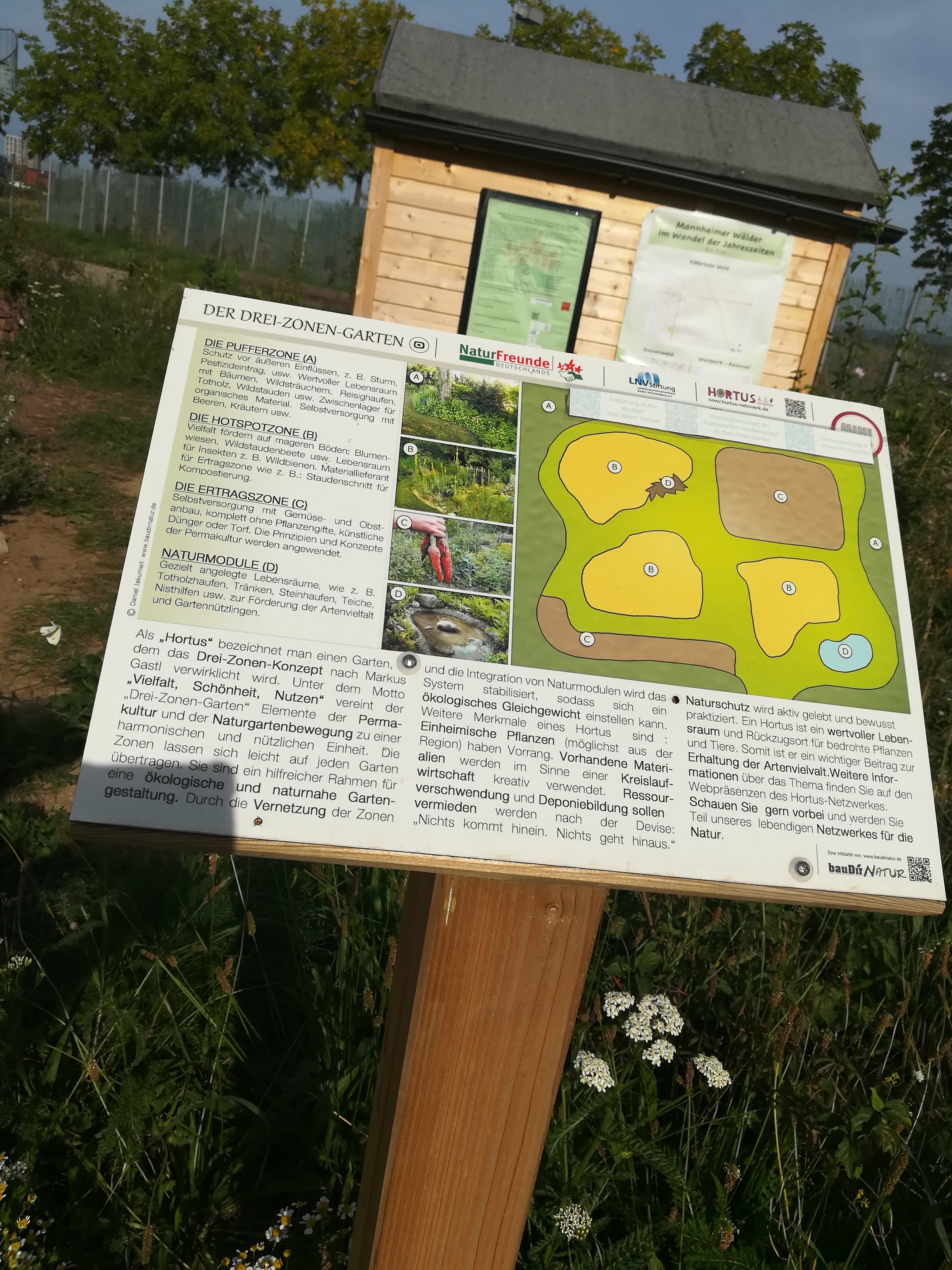 Wir schaffen Lebensraum für Insekten, insbesondere Wildbienen und Kleintiere, Beete für die Selbstversorgung und eine Magerzone entsprechend dem Prinzip des Drei-Zonen-Gartens. Dadurch fördern wir die Artenvielfalt und das Verständnis unserer Nutzer und Besucher für eine naturnahe Gestaltung von Gärten und Grünflächen. Wir folgen den Ansätzen der nachhaltigen Bundesgartenschau in Mannheim 2023 und setzen die dort gemachten Erkenntnisse im Kleinen weiter fort. Die wertvolle Ressource Garten soll mehr Menschen zur Verfügung stehen und im solidarischen Miteinander zu einem nachhaltigeren Umgang mit der Natur einladen. Vorträge und Führungen zum Thema (essbare) Wildkräter sind geplant. Gemüsebeete zur Selbstversorgung, eine Blühwiese, Kräuterschnecke, Obstbäume und Beerenhecken sollen entstehen. Später sind Events wie Pflanzenbörse, Markt für Ernteüberschüsse, Tage der offenen Tür, u.a. geplant.