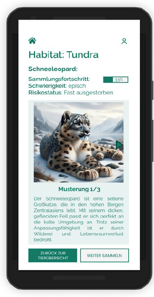 Das Belohnungssystem der App ermöglicht das Sammeln virtueller gefährdeter Tierarten,