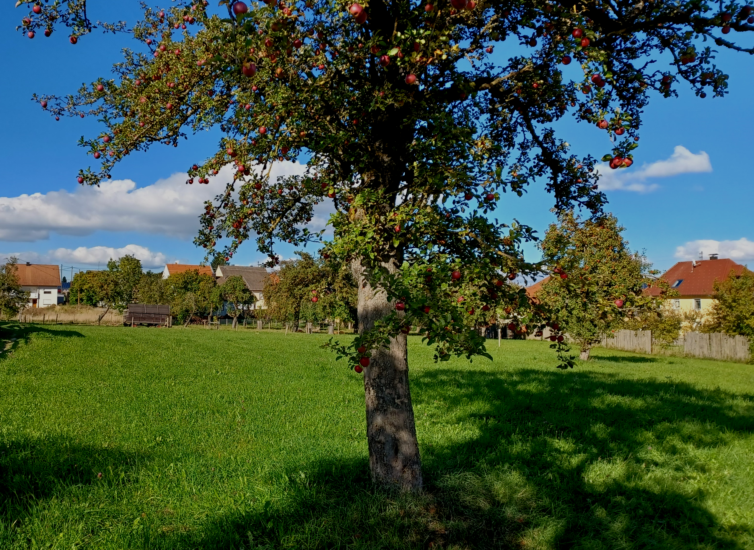 In der Vergangenheit wurden von der Gemeinde, der Kirche, Vereinen und Privatpersonen an verschiedenen Stellen in und rund um unseren Ort Obstbäume gepflanzt. Über die Jahre hinweg ging oft das Wissen verloren, wem diese Bäume denn überhaupt gehören; oder vor allem gesagt, wer die Früchte dieser Bäume ernten darf. Im Spätsommer läuft man dann spazieren und bemerkt: das Obst fällt einfach ab.