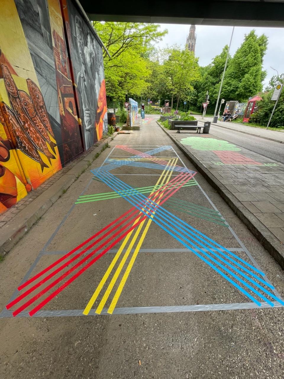 Bene München,Kindergarten Kirschbaum,Icho-Schule,Jugendpension Nockerstraße,Familienbaum ,Appell Umwelt &Gesundheit,die Mosaiken am Fundament der S-Bahn Attrappe wurde von Initiativen & Vereinen gestaltet,mit dabei ua die Lutherkirche