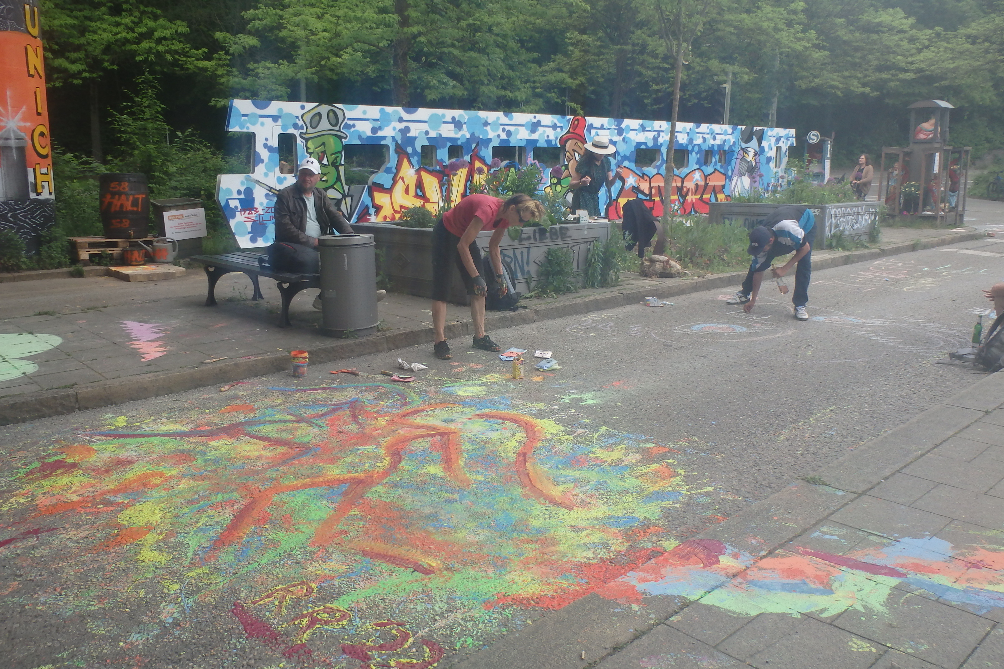 Bene München,Kindergarten Kirschbaum,Icho-Schule,Jugendpension Nockerstraße,Familienbaum ,Appell Umwelt &Gesundheit,die Mosaiken am Fundament der S-Bahn Attrappe wurde von Initiativen & Vereinen gestaltet,mit dabei ua die Lutherkirche