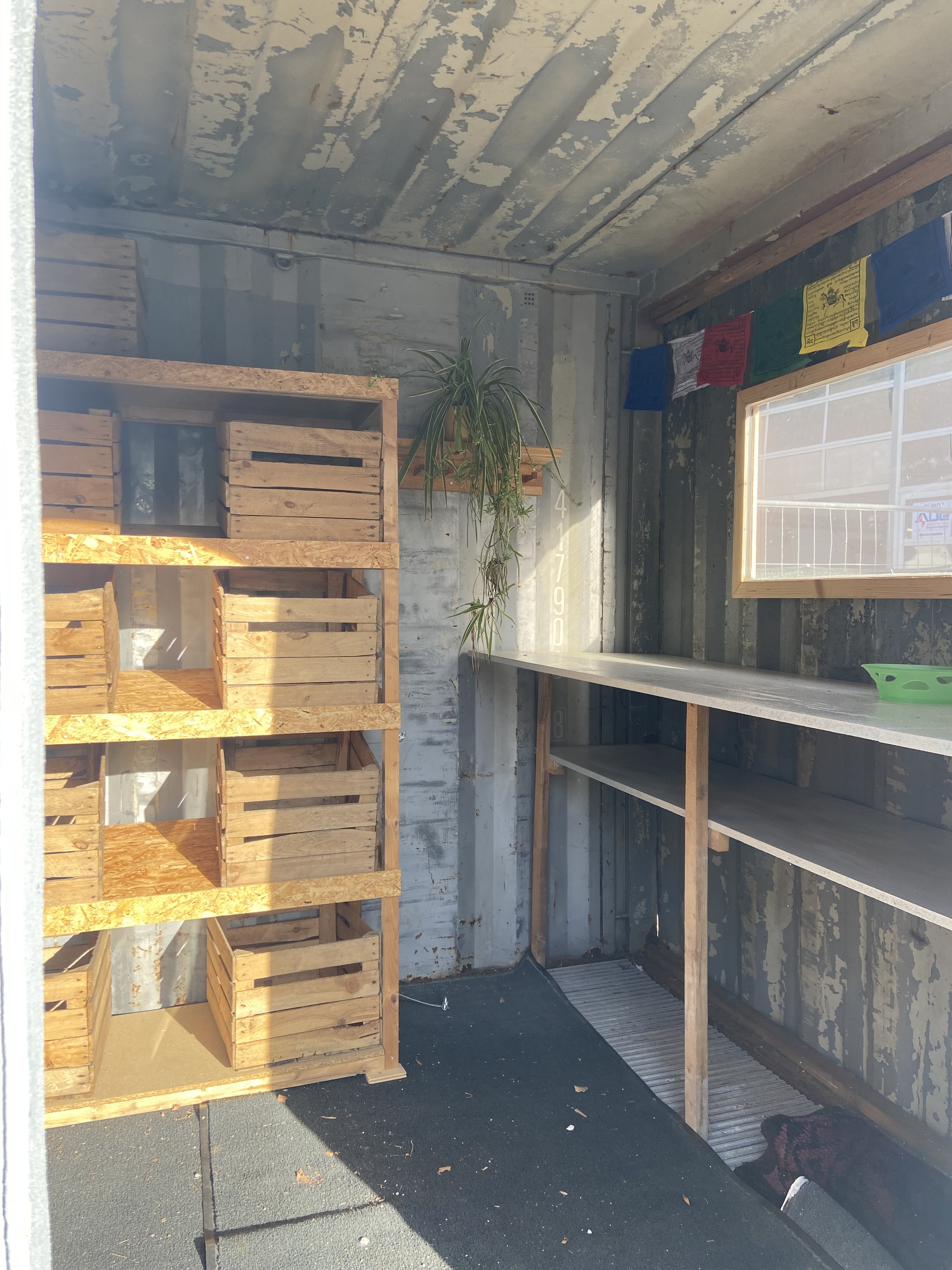 Wir haben einen Container, der Raum gegen Lebensmittelverschwendung und für mehr Biodiversität bietet. Alle BürgerInnen können hier Lebensmittel und Ernte abgeben und wiederum mitnehmen und auch Pflanzen werden getauscht. Zudem kooperieren wir mit einem kleinen Biobauernhof in der Nähe und holen regelmäßig Gemüse und Obst ab, das andernfalls aufgrund der nicht erfüllenden ‚Verkaufskriterien‘ entsorgt werden würde. Das Obst & Gemüse wird dann gegen Spende für alle zur Verfügung gestellt. Durch diesen Ort wird vermieden, dass kostbare Lebensmittel ungenutzt in den Müll wandern und somit die Herstellung/Lieferung etc. umsonst das Klima belastet hat. Für den Sommer benötigen wir eine Kühlmöglichkeit, um auch bei Wärme das abgegebene/abgeholte Gemüse länger frisch zu halten und dadurch länger Zeit hat, von Menschen abgeholt zu werden. Diese Kühlung wird Strom kosten, welchen wir durch Solarenergie beziehen möchten und somit keine Belastung der Umwelt darstellt.