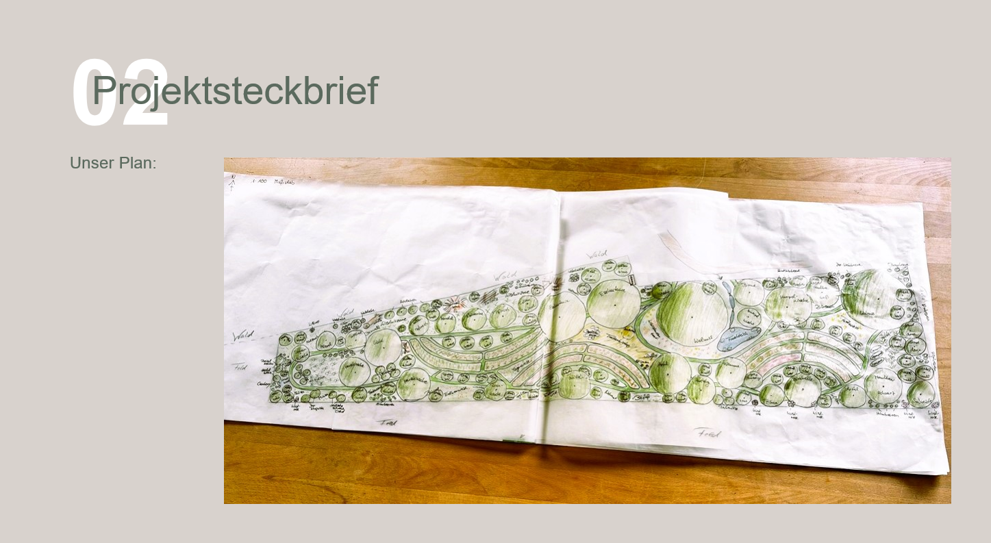 Auf einer etwa 2000 m2 großen Fläche, die bislang Teil eines kontrolliert ökologisch bewirtschafteten Ackers war, wollen wir ein stabiles Ökosystem aufbauen, wie es dem eines natürlichen Waldes entspricht – voller Biodiversität und weitestgehend selbstregulierend. Dabei werden wir einzelne Elemente eines natürlichen Waldes austauschen gegen solche, die für einen Ertrag nützlicher sind (z.B. Nuss- und Obstbäume statt reine Laub- oder Nadelbäume).