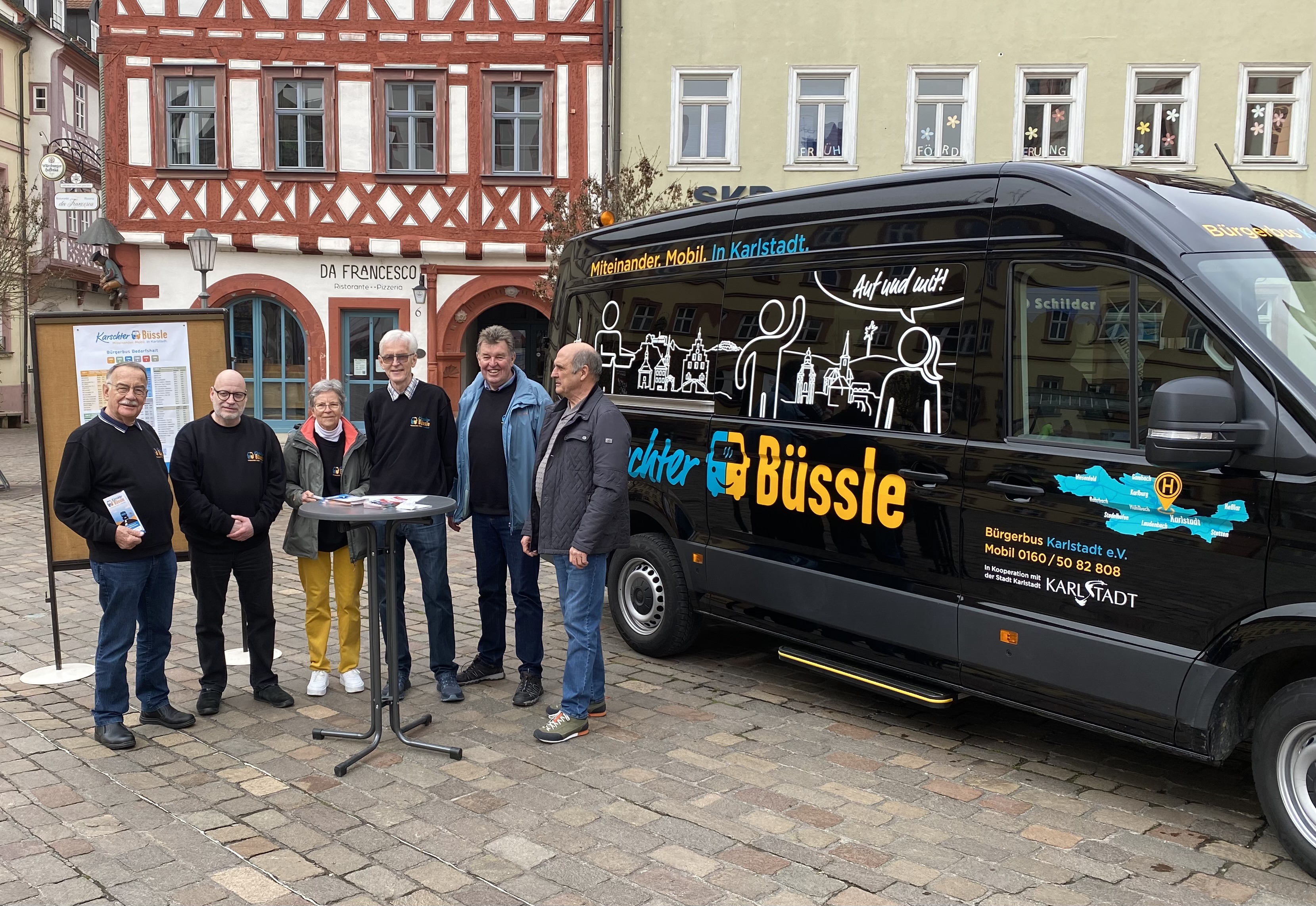 Wir haben in Karlstadt einen Bürgerbusverein gegründet. Hier fahren 20 ehrenamtliche Fahrer nach dem Motto "Bürger fahren Bürger" im Stadtgebiet täglich mehr als 45 Haltestellen an und dies kostenlos.