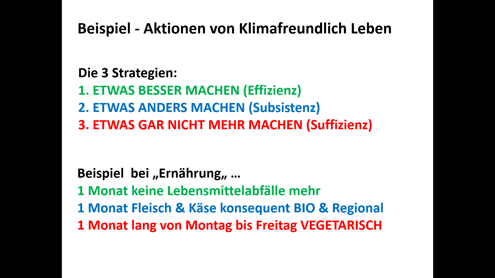 Ein halbes Jahr lang lotest du in einer Kleingruppe á 10 Personen jeden Monat für ca. 3 h gemeinschaftlich und kreativ die besten Möglichkeiten aus, um deinen CO2 Ausstoß zu reduzieren. Du setzt dir konkrete Ziele, welche Veränderung du bis zum nächsten Treffen verwirklichen willst. Den Grad der Herausforderung bestimmst du selbst. Ob du dir kleine Ziele vornimmst wie das Vermeiden von Werbeprospekten in deinem Briefkasten, die Umstellung auf vegane Butter oder das Anlegen von € 30.000 bei einer ethischen Bank, liegt bei dir. Jede Veränderung ist willkommen.