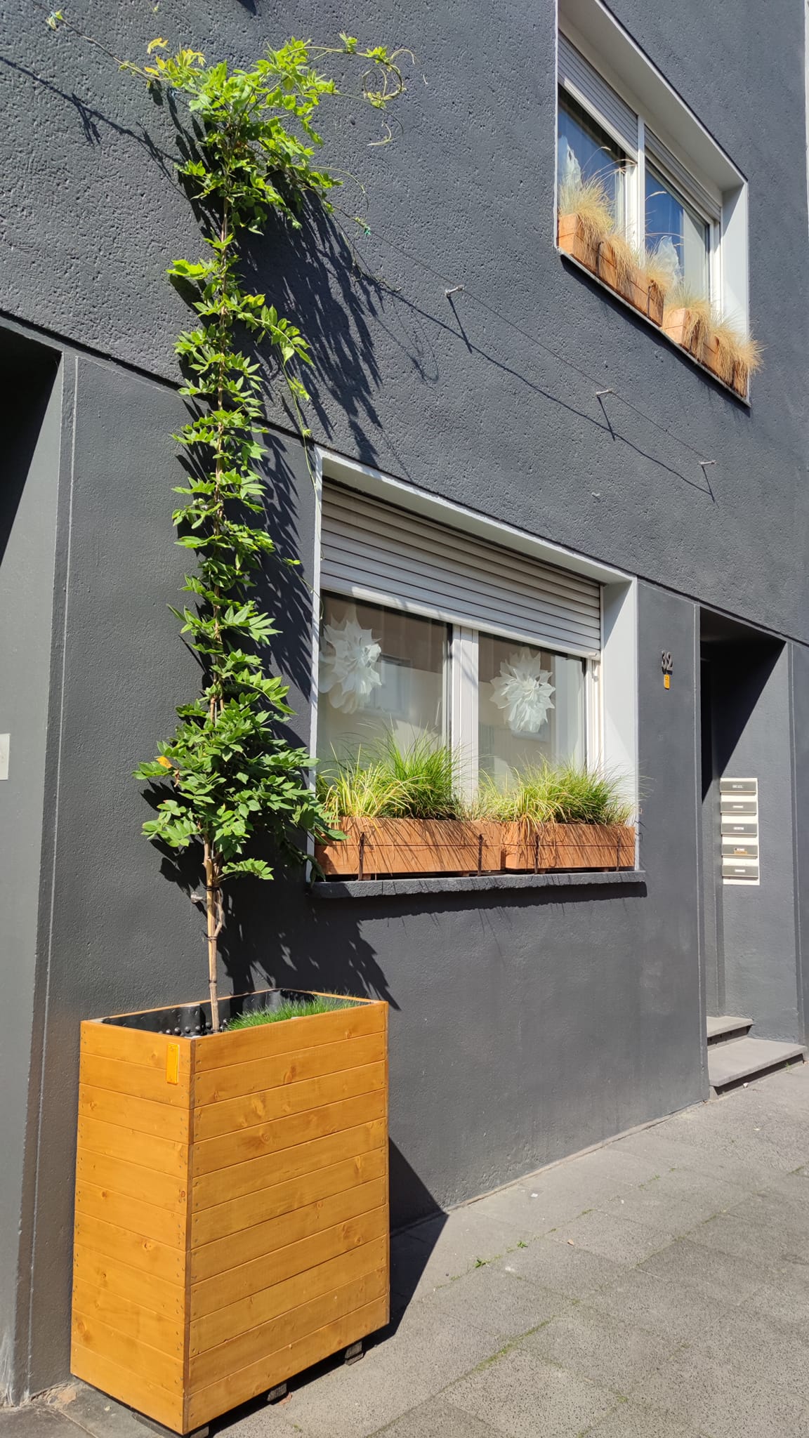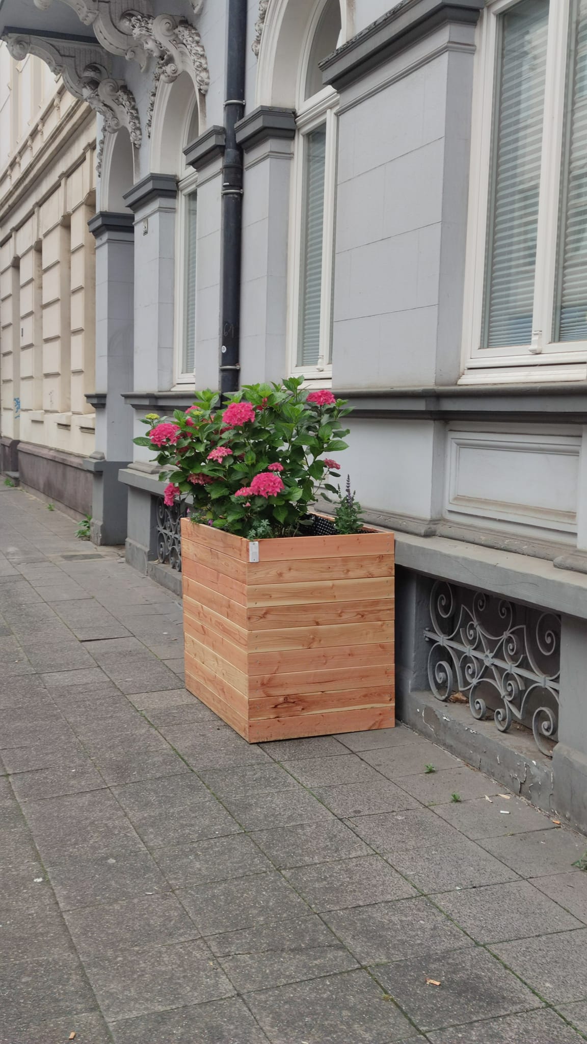 Wir haben 2024 Gelder aus dem Förderprogramm 2000x1000 Euro für das Engagement erhalten und bei der Bezirksvertretung vorgesprochen, die uns ebenfalls mit einem Geldbetrag unterstützt hat. So konnte das Projekt beginnen. Von dem Geld wurden 18 große Kübel auf Bordsteinen finanziert und 27 Fensterbankkästen umgesetzt. Zu Beginn hatte das Projekt Schwierigkeiten, anzulaufen, so groß war die Sorge vor Vandalismus. Inzwischen ist die Anfragensituation groß, aber kein Geld für Material mehr da.