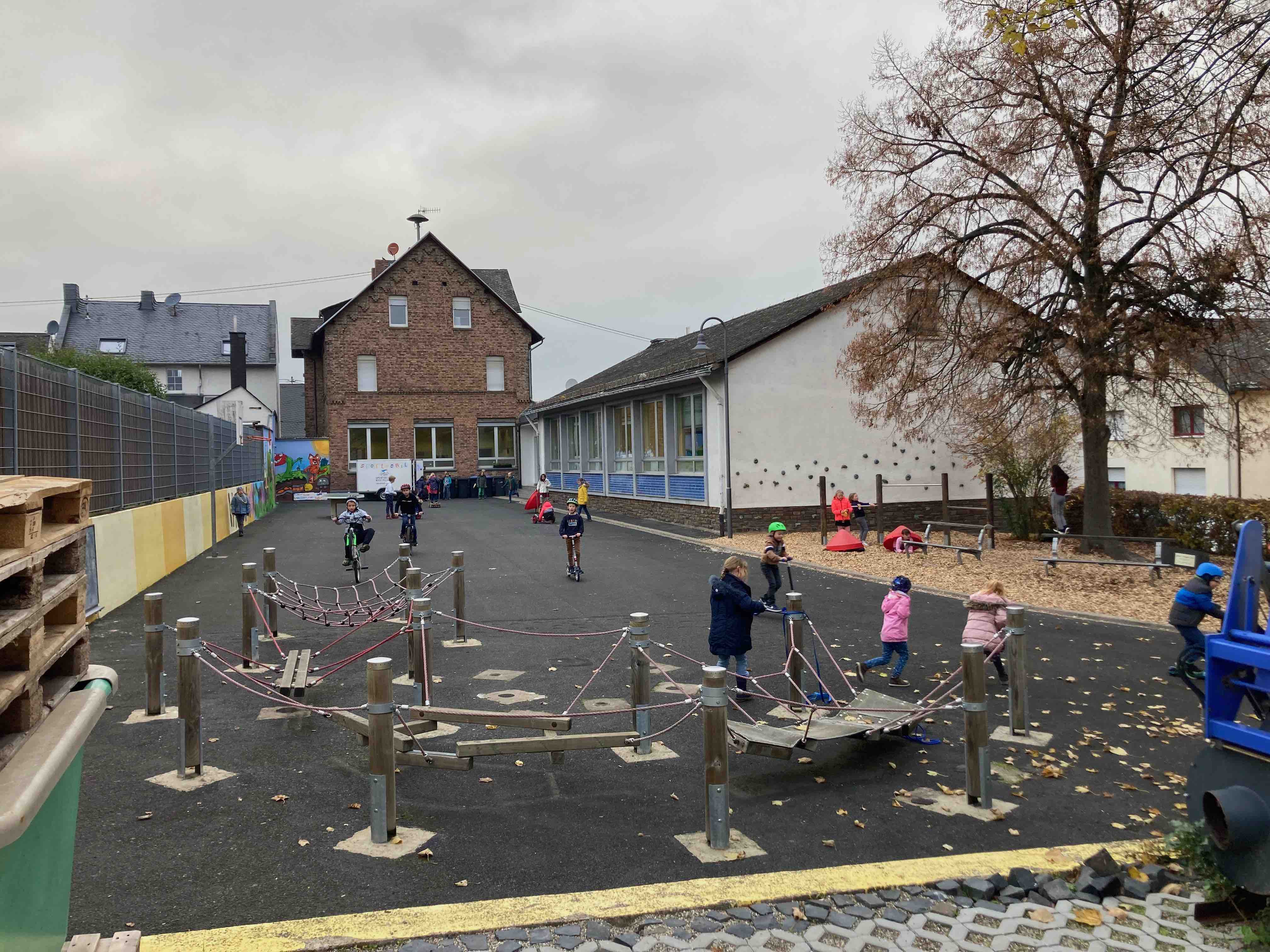 Der Hof der Grundschule, die mitten im kleinen Ort Brey am Rhein liegt, wird zur Hälfte entsiegelt und gemeinsam mit Eltern und Kinder der Schulgemeinschaft zu einem naturnahen Schulhof umgestaltet.