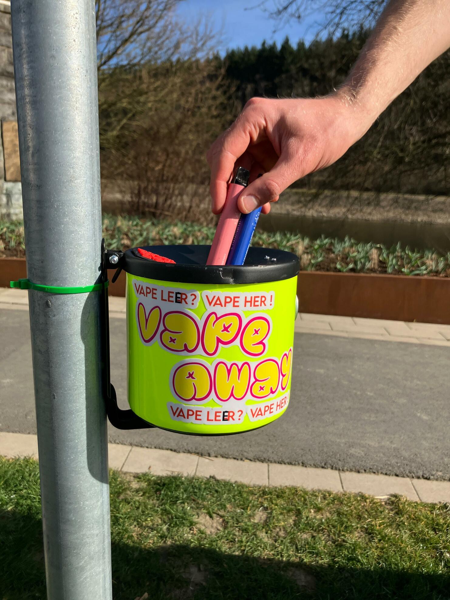 VapeAway schafft Sammelstellen für Einweg-Vapes und klärt durch Öffentlichkeitsarbeit über deren fachgerechte Entsorgung als Elektroschrott, die Umweltfolgen und Gesundheitliches auf.