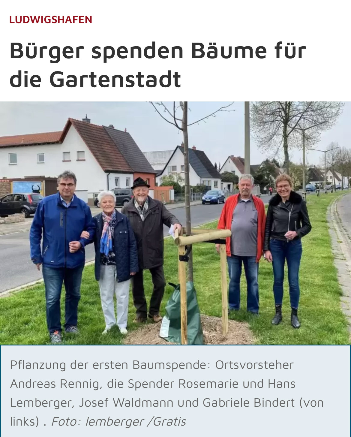 Für jeweils 300.- Euro erhalten wir einen Baum, der von der Stadtverwaltung gepflanzt wird. Für 2.000.- Euro könnten wir so weitere knapp 7 Bäume in unserem Stadtteil pflanzen.