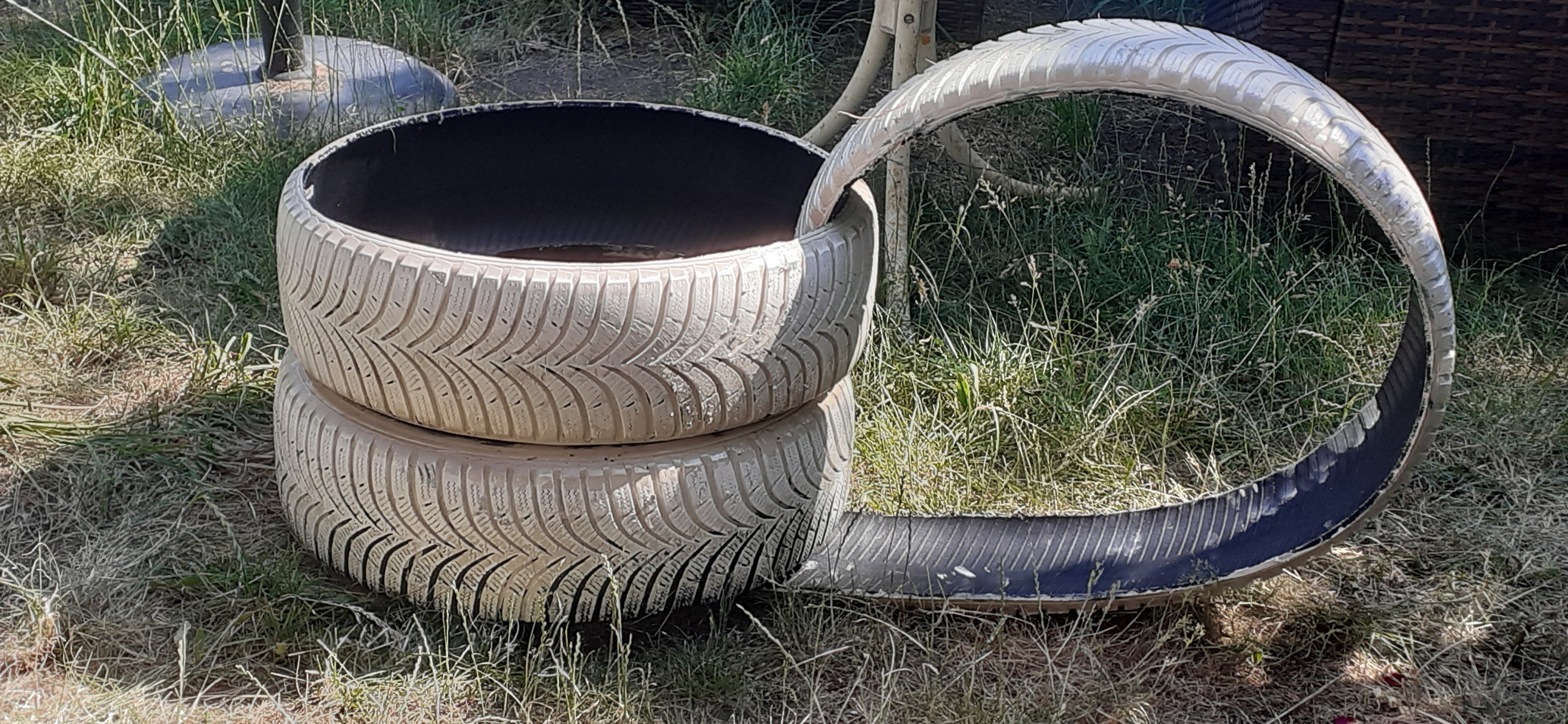 Ich habe aus meinen alten Autoreifen Blumentöpfe für den Garten gebaselt.